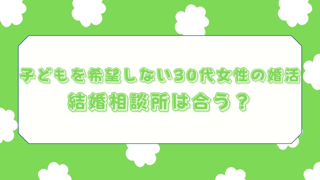 30代女性で「子供を希望しない」婚活の現状と背景 近年、ライフスタイルの多様化に伴い、結婚に対する価値観も変化しています。かつては「結婚=子供を持つこと」が一般的な前提とされていましたが、現在では夫婦二人の時間を大切にする生き方や、仕事や趣...