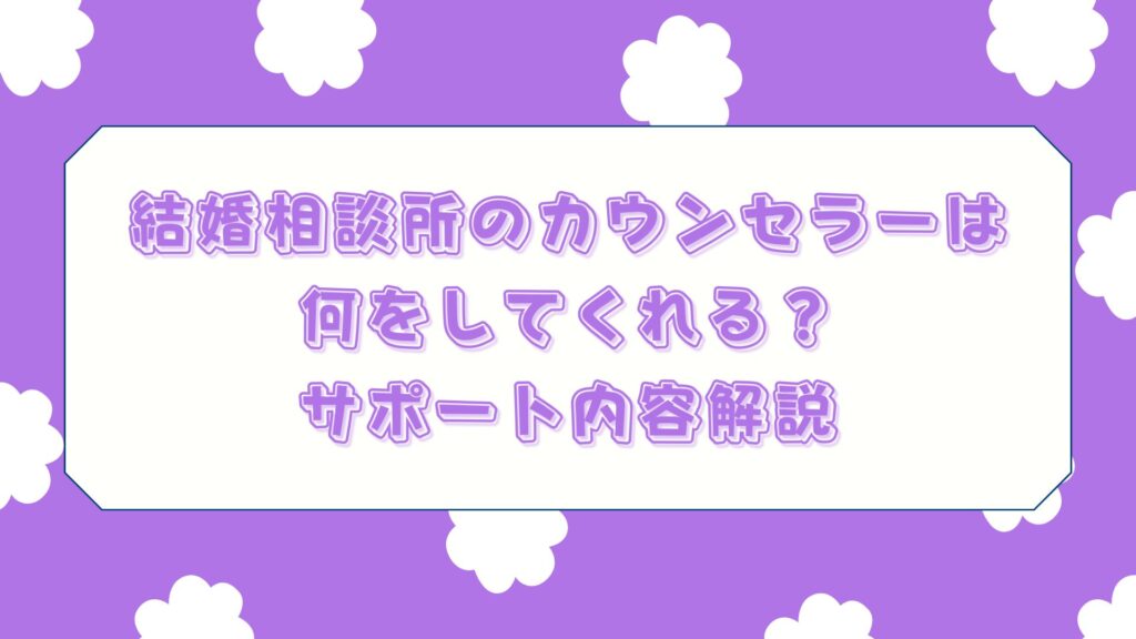 結婚相談所におけるカウンセラーの役割と具体的なサポート内容 結婚相談所におけるカウンセラー(仲人、アドバイザー、コンシェルジュとも呼ばれます)は、会員の婚活を側面から支える伴走者のような役割を担います。入会から成婚退会に至るまで、活動のフ... -